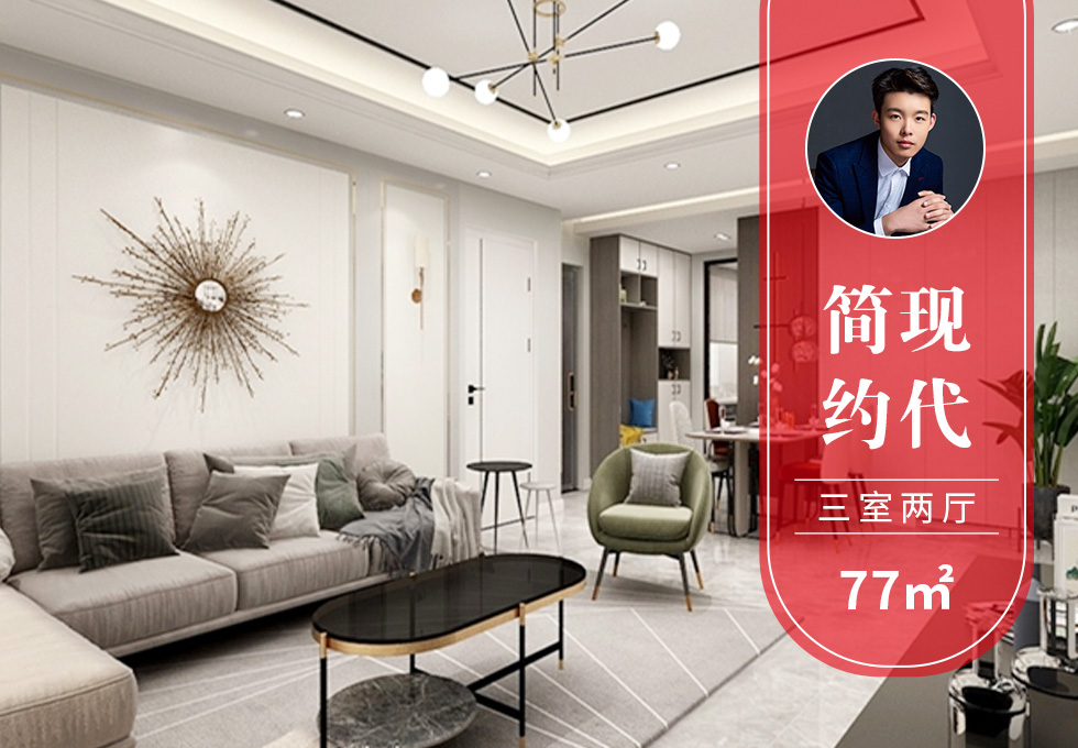 设计师:郭海波 风格:现代简约 户型:77㎡ 三室两厅