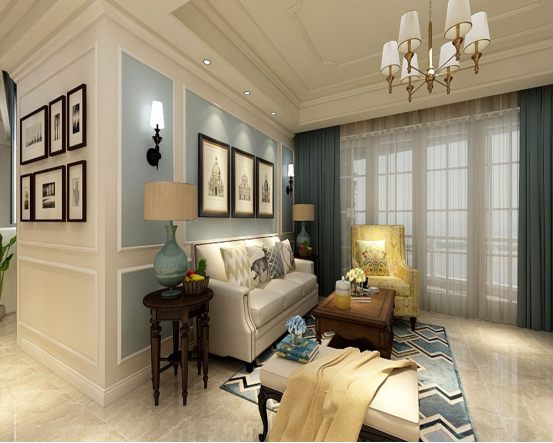 为追求华丽、高雅的美式风格,擅用丰富的木线变化,富丽的窗帘帷幄是西式传统室内装饰固定的模式,空间环境多表现出华美、富丽、浪漫的气氛.
