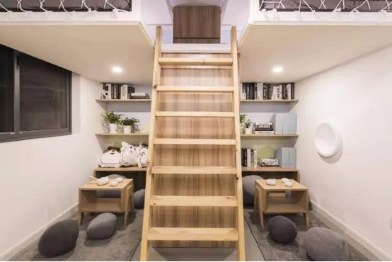 男孩子的房间运用了复式搭建的功能,上面是床,下面是阅读区间和书桌,功能性和美观兼具的楼梯,让每天的生活都充满了活跃。