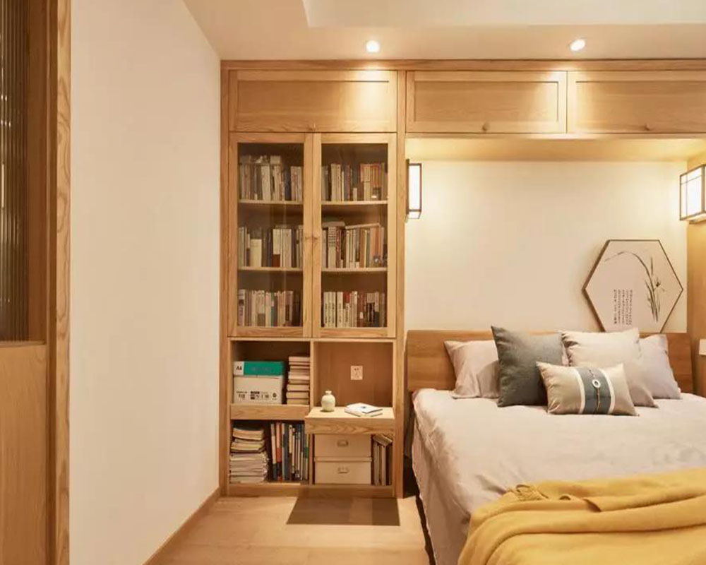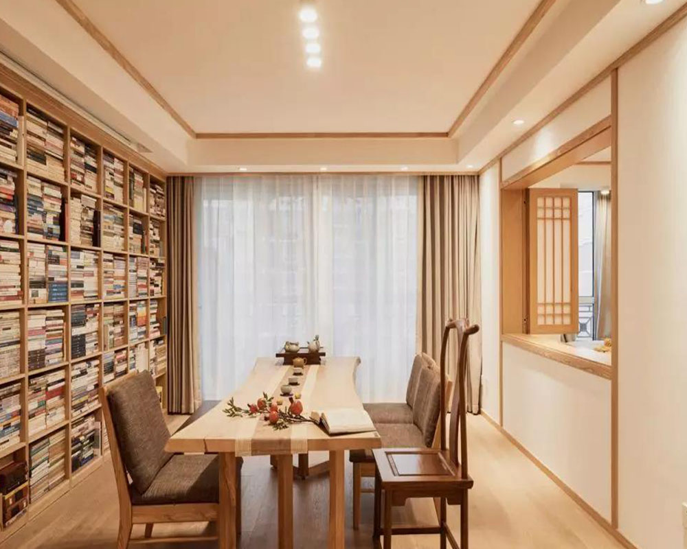 这是一套130平米的房子,房子的主人是一对教授夫妇,他们有着超乎常人想像的藏书量,所以在设计的时候整个房子也是围绕着书香门第的格调,在原木质感的空间下,用书籍把整个房子都营造出聪明自然舒适的氛围感。